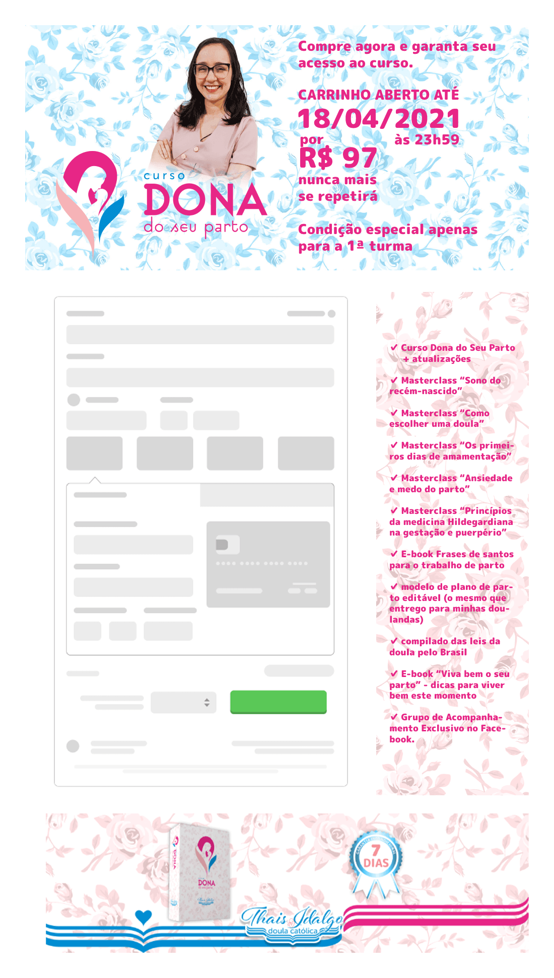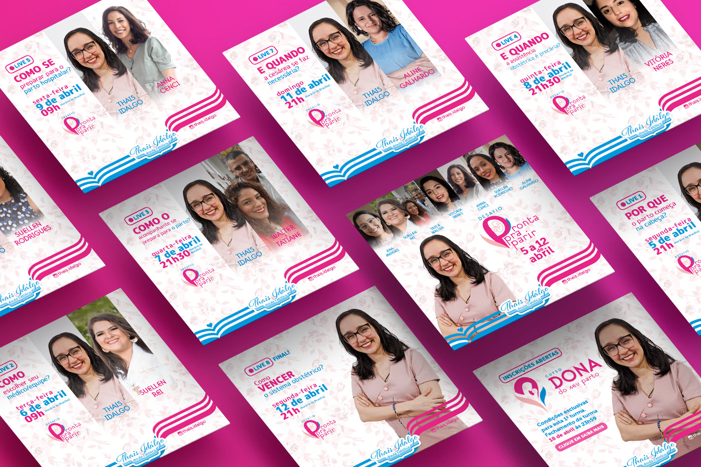Projeto de Identidade Visual do Lançamento do Curso Dona do Seu Parto, de Thais Idalgo - doula católica.