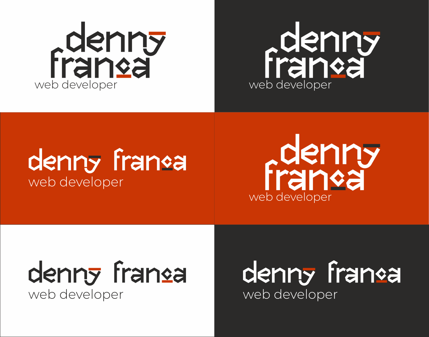 Na tipografia da logo, eu criei do zero as letras que compõem "denny frança". Foi escolhido escrever tudo em minúscula, como são escritos os códigos de programação. As minúsculas também dão mais proximidade ao público, seja de quem for atrás dos serviços, seja de quem for atrás do conteúdo de instagram.